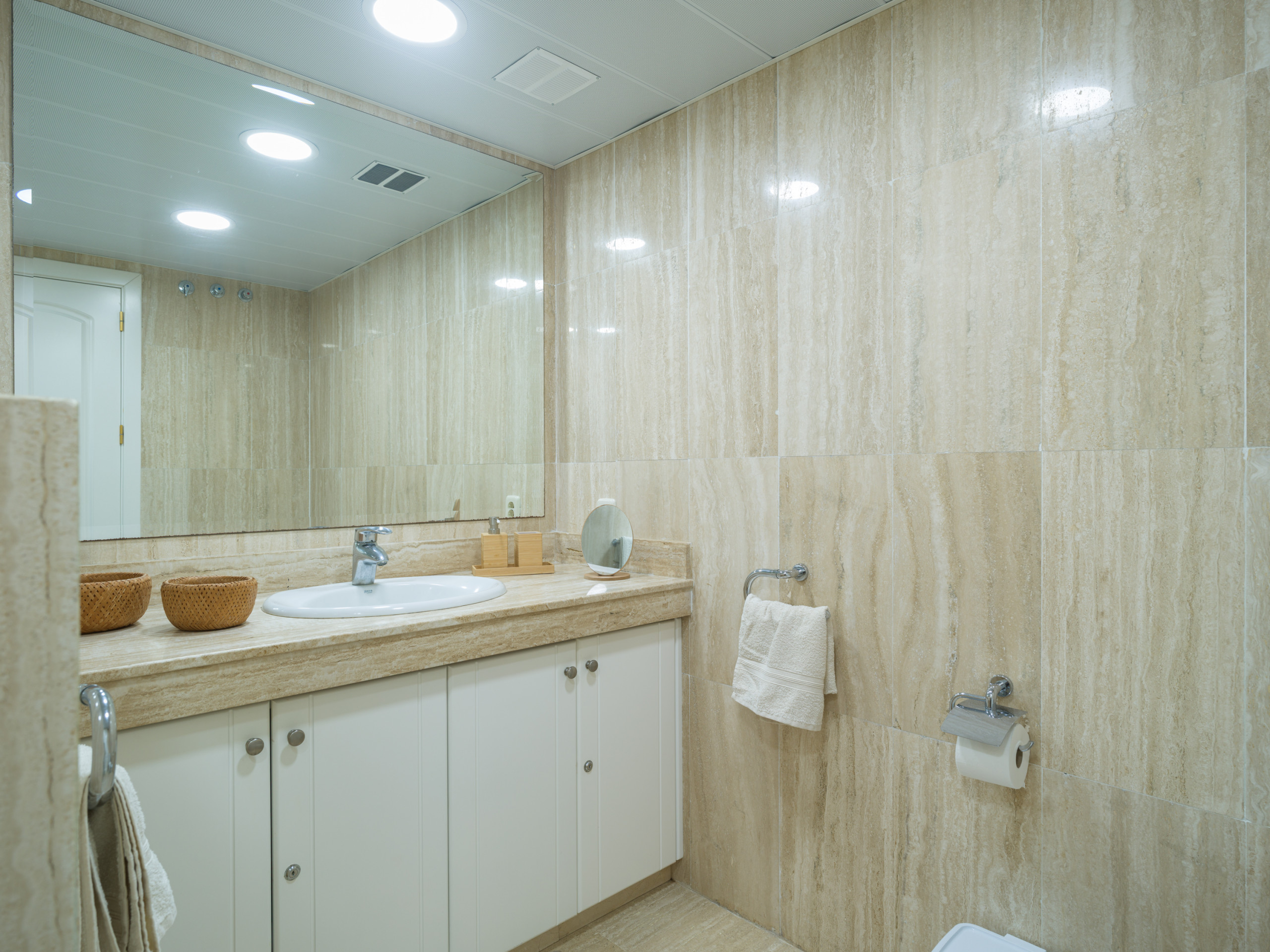 Boendet är utrustat med följande föremål: hiss, 15 m² terrass, tvättmaskin, strykjärn, internet (Wifi), hårtork, värmepump, luftkonditionering i hela huset, garage in på plats, 1 TV, radio.