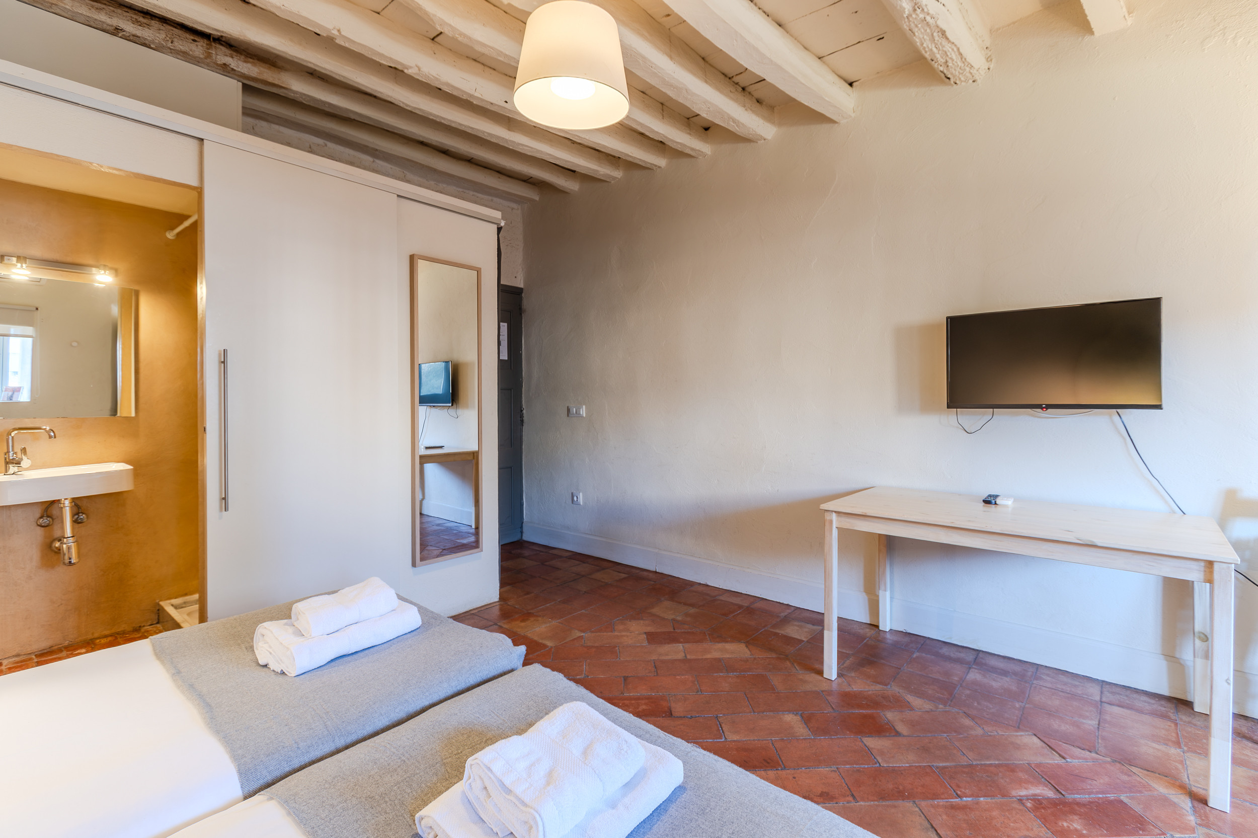 This traditional apartment is located in the heart of the Old town of Girona, overlooking the Onyar River, and within walking distance of the historic sites of the city, and shops and restaurants. The flat has been sympathetically restored and has a small well-equipped kitchen. There are lovely original beams and tiled floor. The bed is comfortable and the shower is powerful with plenty of hot water.