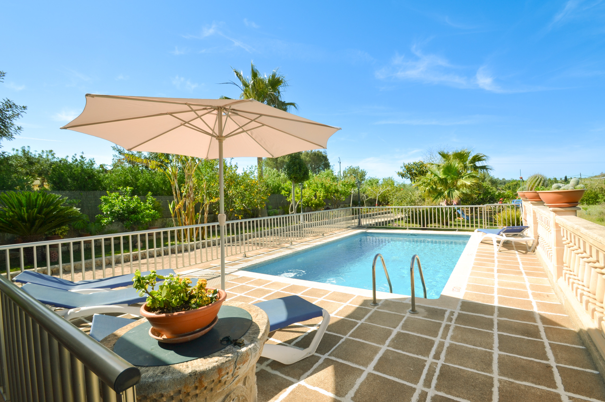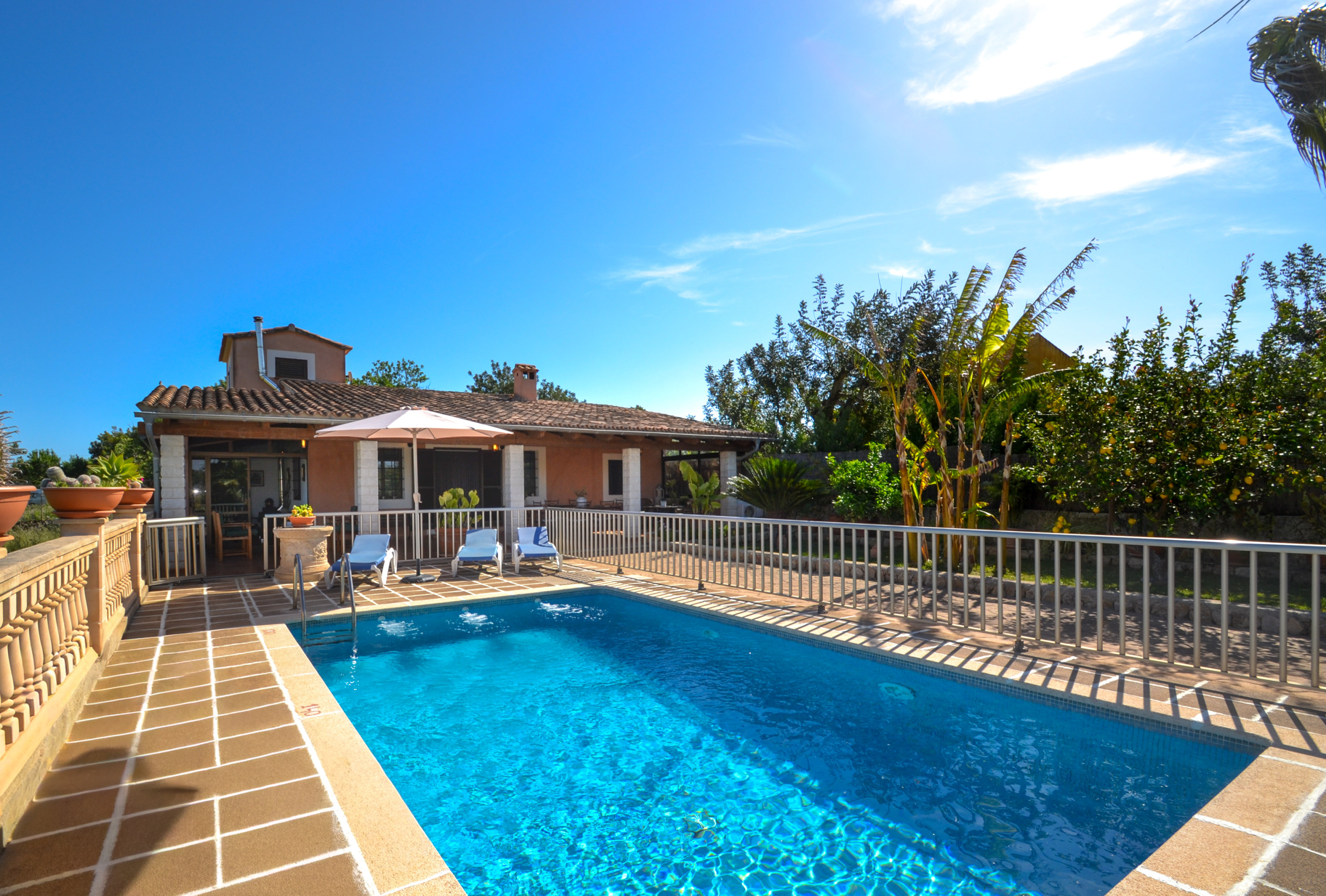 配有 公园, 庭院家具, 围栏空地, 120 m² 露台, 洗衣机, 烧烤, 木屋, 熨斗, 保险箱, 互联网接入 (Wi-Fi无线网), 吹风机, 儿童游乐区, 电暖器, 全住宿配空调, 泳池 私人泳池, 露天式停车场在同一建筑物内 (3 位置), 1 电视, 卫星电视 (语言: 西班牙语, 英语, 德语).