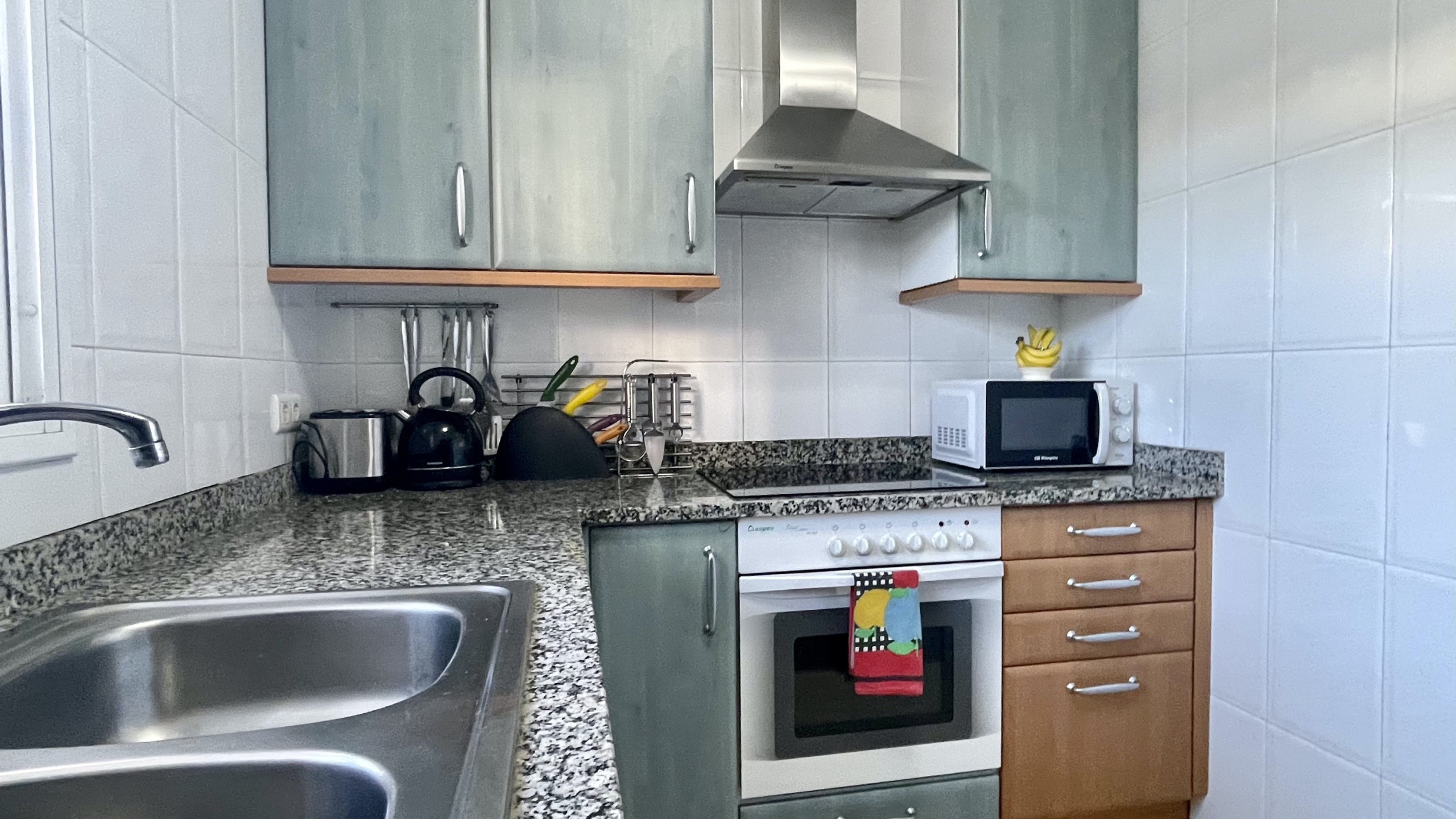 该 独立式厨房的 玻璃陶瓷 厨房, 配备有 冰箱, 微波炉, 烤箱, 冰柜, 洗碗机, 碗碟/刀具, 餐具/厨房, 咖啡壶, 面包机, 烧水壶 和 榨汁机.